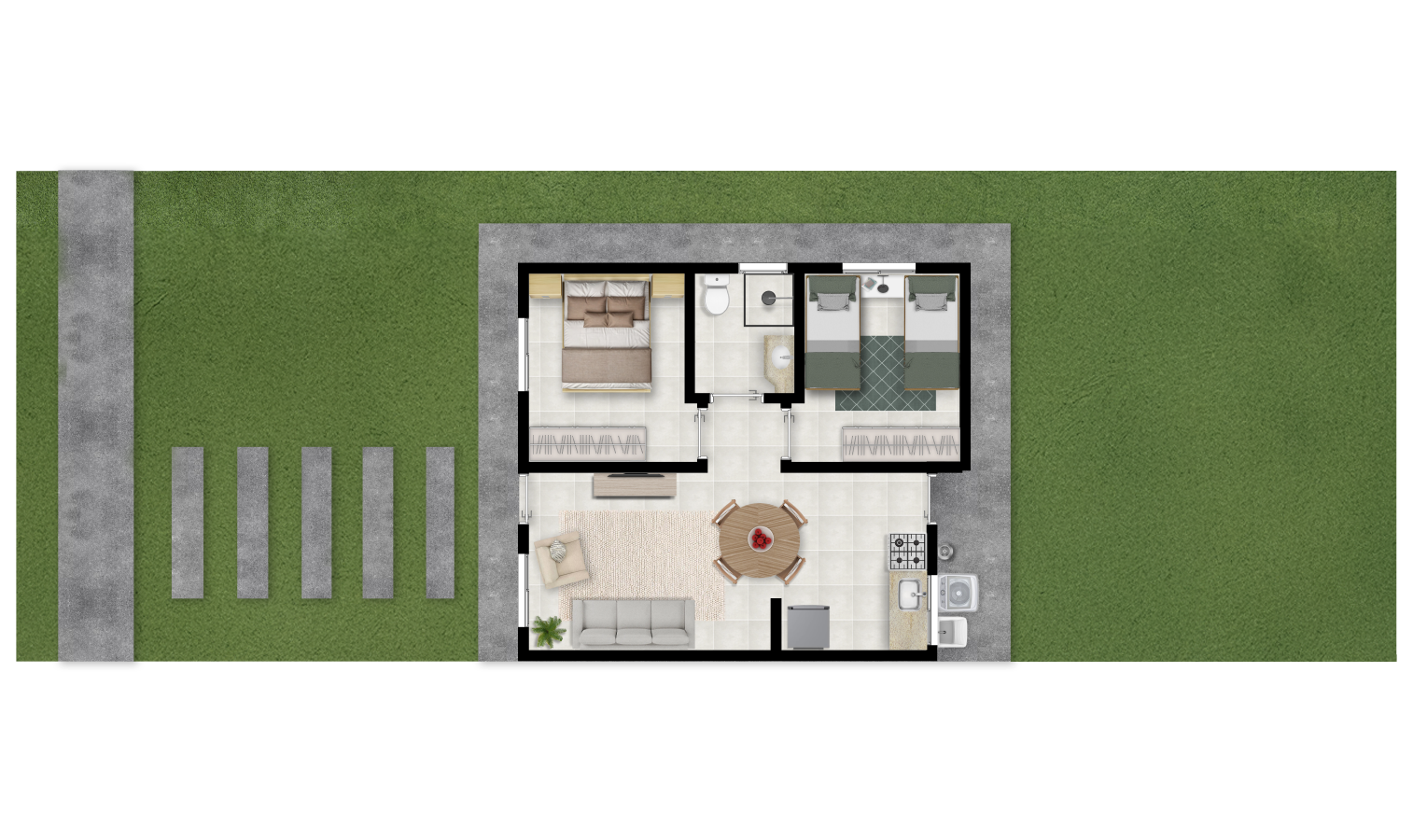 Cada unidade conta com 50,12m² de área construída e terreno de 160m², proporcionando conforto e liberdade para toda a família.