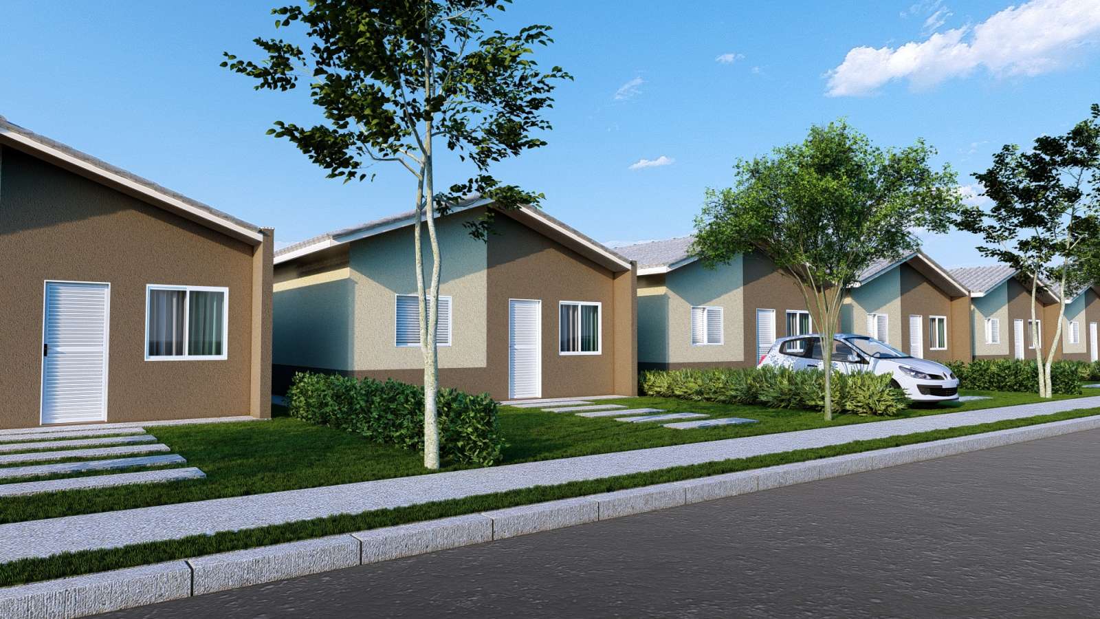 Viva o melhor da tranquilidade e da praticidade em casas térreas de 2 quartos, com sala, cozinha, banheiro, garagem e quintal privativo.